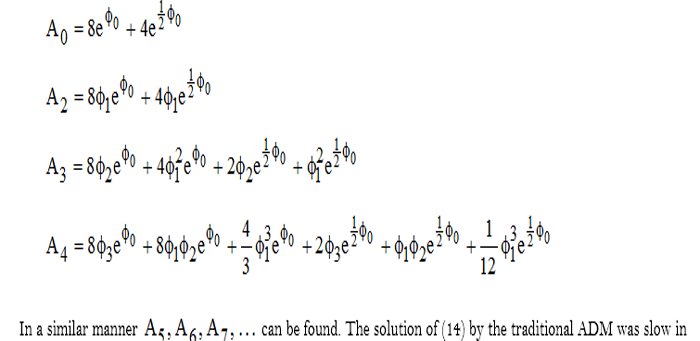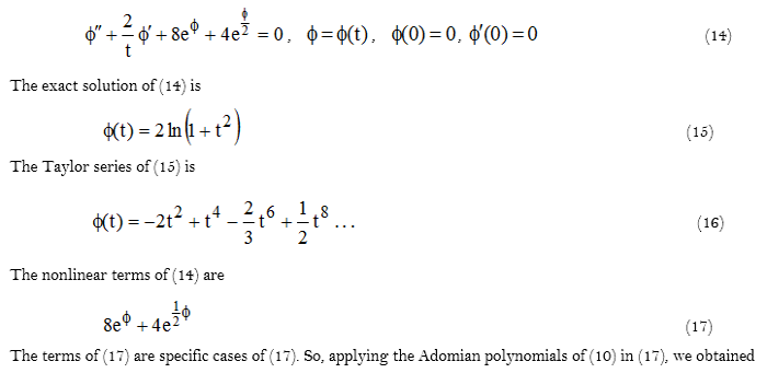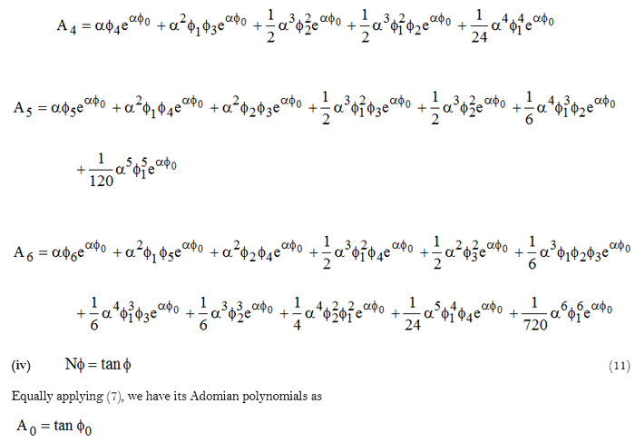 An are the Adomian polynomials that can be obtained for various classes of nonlinearity according to specific algorithm set by Adomian [2].