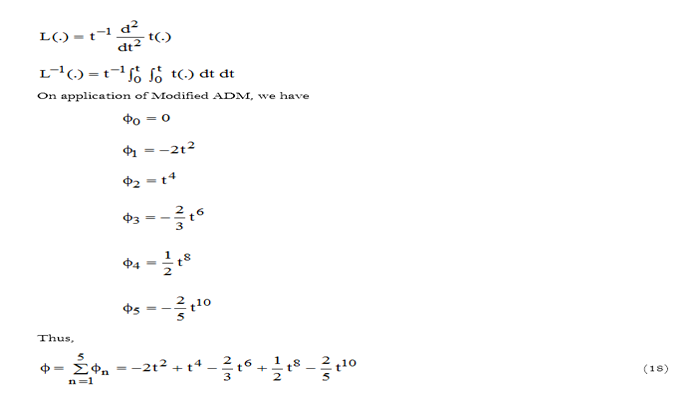 convergence to the exact solution. So we explore the Modified ADM by Yahaya and Mingzhu [5] and Neelima and Kumar [6] in conjunction with procedures in Agom and Ogunfiditimi [7] and Agom, et al. [8]. The linear operator of (1) and its inverse are given as
