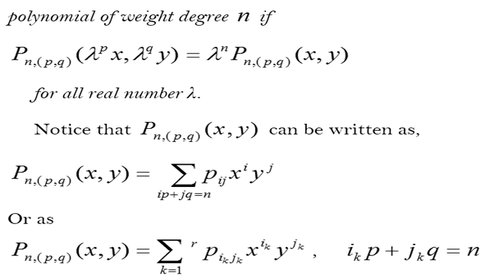 The quasi-homogeneous (and in general nonhomogeneous) polynomial function is defined as follows,