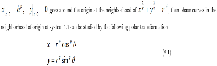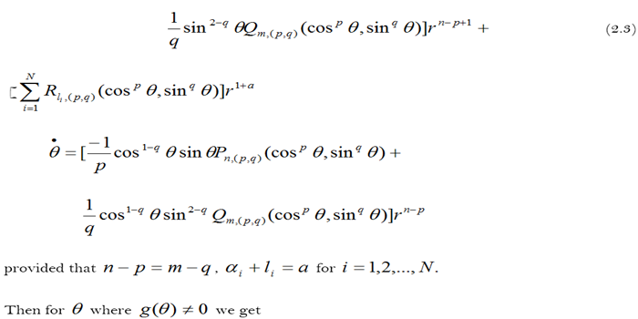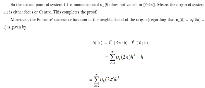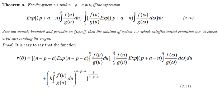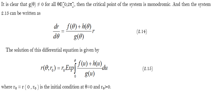 A critical point is called a Centre if it has a punctured neighborhood full of periodic orbits. The largest of such neighborhood is called the period annulus of the Centre. If the eigenvalues of the linear part of X at the Centre are not purely imaginary, then the Centre is called degenerate. This is our case since n ≻1. In the period annulus of a center the so-called period function T(x) gives the least period of the periodic solution passing through the point with coordinates (x,0)=(r,0) inside the period annulus of the Centre. If all periodic solutions inside the period annulus of the Centre have the same period it is said that the Centre is isochronous. For more details on characterization of isochronocity see [5] and references therein. For a Centre that is not isochronous, any value