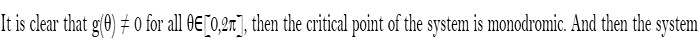 also been investigated by many authors, see for example [6]; [7] and references therein. Recall that a critical point is called monodromic if there are no orbits tending or leaving the point with a certain direction. For analytic vector fields, monodromic points are either Centre or focus, and the problem of distinguishing between both options is called the Centre -focus problem. In order to have a Centre at the origin we only need to guarantee that the origin is monodormic and moreover, that some definite integral, that can be obtained from the expression in quasi-homogeneous polar coordinates, is zero.