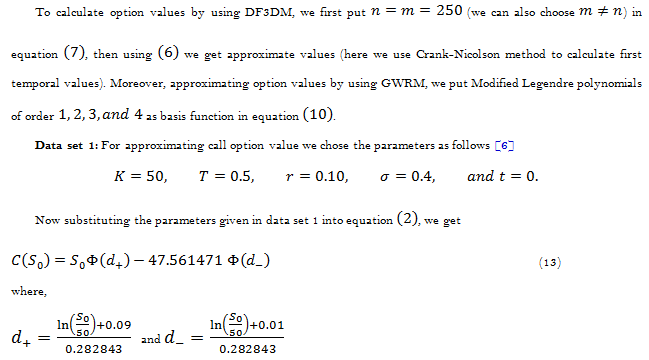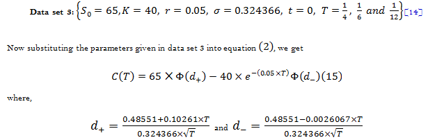 In this section, we take two data set for valuing European call option and one data set for finding the value of European put option.
