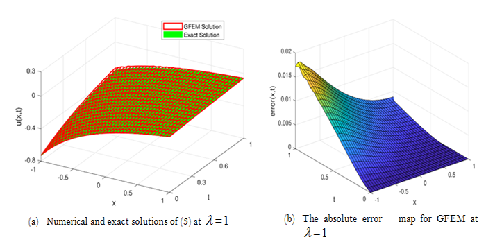 In this section, we apply GFEM on FitzHugh-Nagumo equation according to the algorithm discussed in the previous section. We will present our results both graphically in diagram and numerically via tabular form. In each format, we will compare our approximate results with the exact solution.