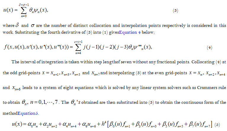 Many Authors such as Ogunware and Omole [3];Adoghe and Omole [4];Ukpebor, et al. [5];Olanegan, et al. [6];Adeyeye and Kayode [7];Jator and Lee [8];Hussain, et al. [9] have devoted lots of attention to the development of various methods for solving (1) directly without reducing it to system of first order.