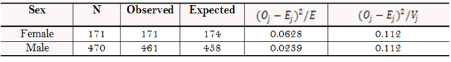Note: Chisq= 0.1 on 1 degrees of freedom, p= 0.7.