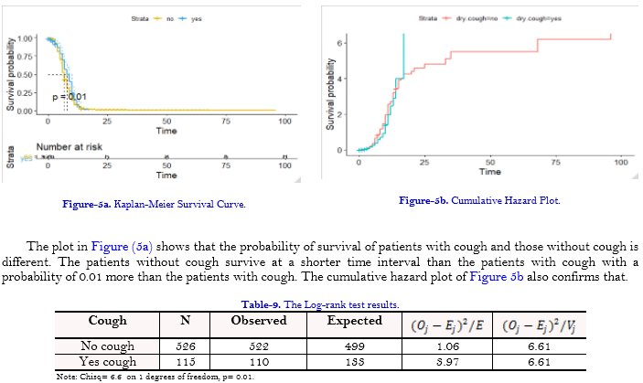 The log-rank test confirms that there is a significant difference in survival time between those that have cough and those that do not have cough.