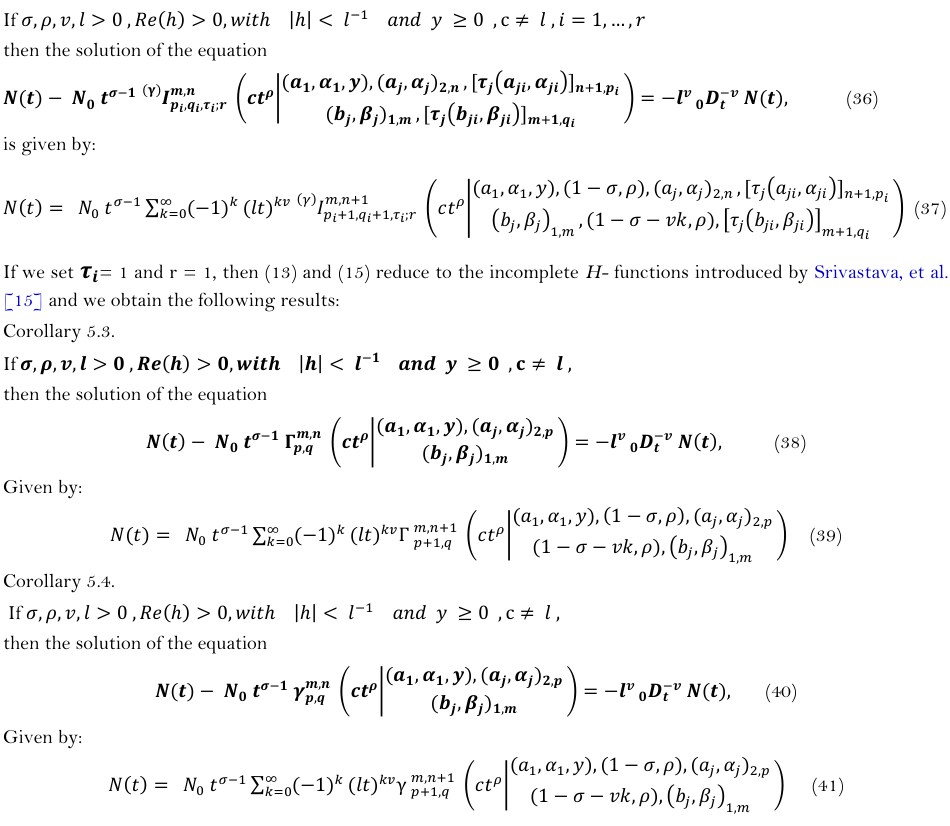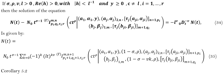 Haubold and Mathai [1] created the fractional differential equation between the rate of change of the reaction, the destruction rate, and the production rate, which is stated as follows: