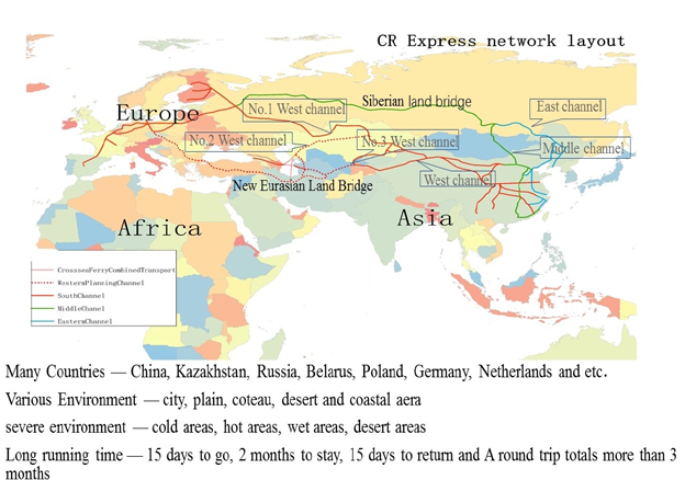CR Express is a land container international intermodal train having transportation in ELB (China and Europe) organized by China railway corporation. In the domestic section, the trains operate according to the railway operation organization pattern of "combination of trunk and branch, hub for the distribution", and in accordance with the bus organization pattern and the principle of "five determinations". On June 8, 2016, China railway officially adopted the CR Express brand (Zhang, 2018). In fact, CR Express tried to operate in 2012. The earliest route passed through Chongqing without government subsidies, and the company set up factories in Chongqing, and the final destination may be in eastern Europe, Poland, Germany and other places. In 2014, the "One Belt and One Road" policy began to develop rapidly.