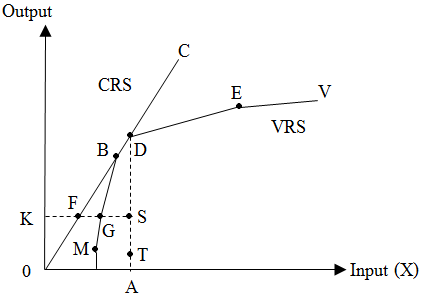 3) When the yield increases less than the proportion of the increase in all production inputs, it is considered decreasing returns to scale (DRS).