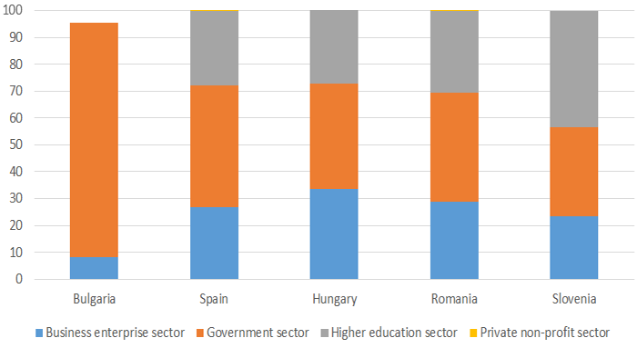 Similar to Bulgaria in the rest of analyzed countries the share of the Private Non-profit sector in the overall amount of agrarian R&D activity is negligible.