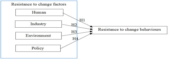 Figure-2. Conceptual model of antecedents of resistance to change behaviours towards sustainable construction practices.