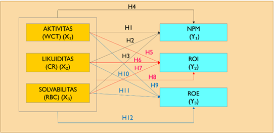 Framework and Research Hypothesis Since insurance companies’ performance is reflected in their liquidity and solvency, it can be stated whether they can meet the clients’ obligations for any future claims. . At the same time, insurance companies must make a profit in their business in order to meet shareholders’ obligations. Therefore, this study seeks to examine the influence of WCT, CR and RBC to NPM, ROI and ROE. The relationship between independent variables and dependent variables of this study are shown in Figure 4.