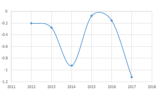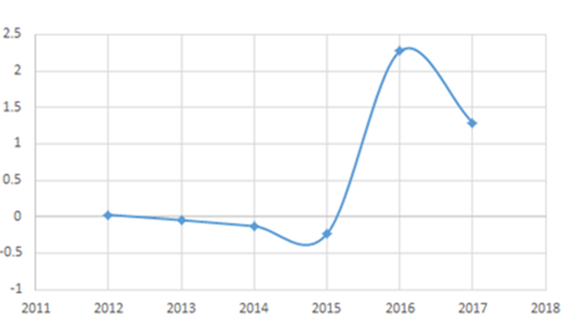 Figure-2. ROA Plastics industry in Indonesia for the period 2012-2017.