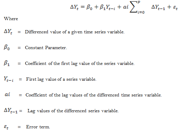 The unit root test is a test employed to test the stationarity level of the series. This checks the order of integration for each of the series. If the series is stationary at level it can be said that it is integrated in the order I (0), if it can be differentiated once to make it stationary, then it is integrated in the order I (1). We will employ Augmented Dickey-Fuller (ADF) test for this analysis.