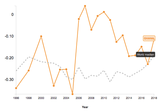 Figure-4. Control of Corruption, 1996-2018 (Ghana against World Median).