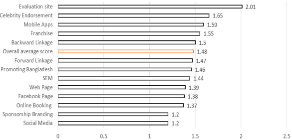 Figure-2. Overall average score of creative marketing and innovative branding tools to attract customers of tourism and hospitality industry of Bangladesh.