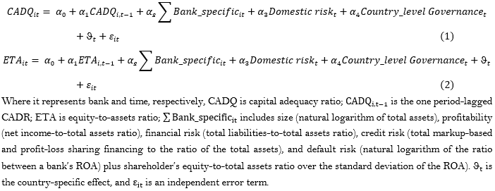 Although several studies have investigated the determinants of Islamic bank capital ratios, few studies found to examine the dynamic effect of environmental characteristics on Islamic bank capital ratios. This study fills the research gap by examining comparatively the impact of country-level governance quality and domestic risk on capital decisions of Islamic banks operating in Arab markets by performing the System-GMM dynamic panel technique.