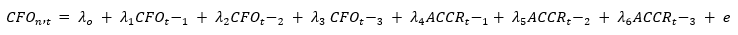 Nguyen and Nguyen (2020) analysed the accrual elements of earnings in two concepts: the consolidated accrual variable and the differentiated accrual function. The accrual accounting component was calculated as the difference between operating cash flows and earnings. The present study examined the ability of both definitions to predict actual accrual earnings. The aggregated accumulated components of quarterly earnings are denoted as ACCR, t-i. The approach was presented to resolve the study hypotheses. It is postulated that cash flows and accruals accounting components of earnings can greatly predict future cash flows.