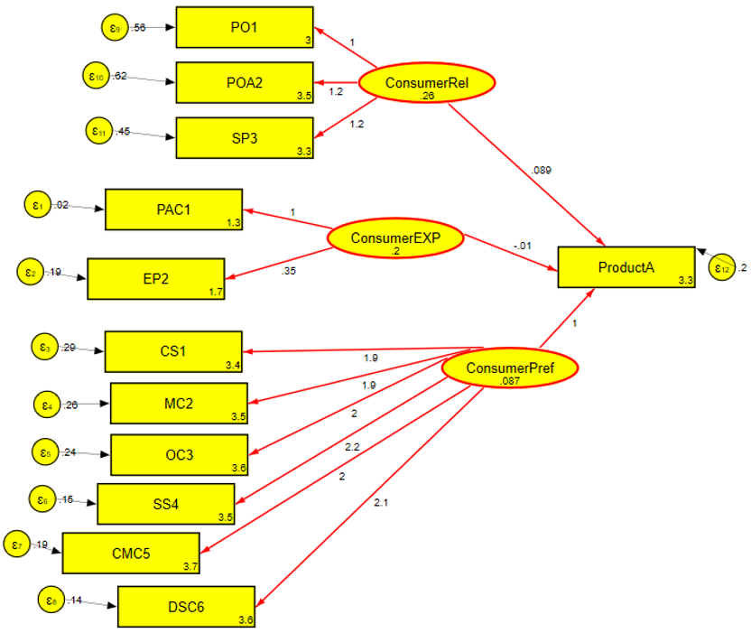 To assess Chinese consumer confidence in the safety of meat and DIF products, we constructed a suitable scale using principal component analysis (PCA) and legitimized it using confirmatory factor analysis (CFA). Some of the 25 questions answered by respondents to assess consumer confidence about food safety were acquired from the research of De Jonge, Van Trijp, Goddard, and Frewer (2008), with adjustments made to apply specifically to meat and DIF products. Certain items assessed consumers’ perception of meat and DIF products' safety, their choices and preferences connected to utilization, as well as their liking and disliking behaviors regarding the safety of meat and DIF products (Grubor, Milicevic, & Djokic, 2018; Abbas et al., 2022). Every item was measured on a 5-point Likert scale from (1) strongly disagree to (5) strongly agree. To check the accuracy of the measurement scale, the data were randomly divided among separate items. In the PCA, varimax rotation was initially supervised to investigate the fundamental measure design of 25 samples constructed on the scale. To measure whether this standard achieves a good fit with other independent items, the more precise CFA was adapted to the items to maximize possible accuracy. After three samples were eliminated that diverged notably from what was anticipated depending on the sample feedings, an accurate measurement with 9 items was selected to estimate consumer confidence about the safety of meat and DIF products. Consequently, estimating consumer confidence and choices made regarding the safety and quality of DIF products and meat after the Covid-19 pandemic in this region is useful for local dairy companies and meat producers to implement efficient market strategies while engaging with global organizations. This research selected consumers who were buyers of meat and DIF products; all respondents were selected online through the WeChat social network.