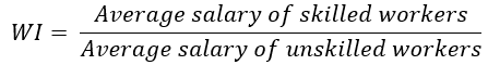 The variable representing wage inequality is WI, which is calculated as the average salary of skilled workers compared with the average salary of unskilled workers in province i and year t. According to Te Velde (2003) and Taylor and Driffield (2005), the variable WI can be calculated using the following formula: