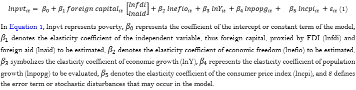 One of the most important ways developed countries can improve the lives of those in less developed areas is through foreign aid, which has alleviating poverty and reducing economic disparities as its primary objectives. It has been argued that foreign aid's average growth benefits represent a particularly important measure of its efficacy. Even Burnside and Dollar's (2000) conclusion that aid enhances growth can be questioned in light of more recent findings. According to Easterly, Levine, and Roodman (2004), there is no evidence that aid has any effect on growth, even when institutions are of high quality. On the other hand, Rajan and Subramanian (2008) and Bräutigam and Knack (2004) argued that aid can actually contribute to the deterioration of democratic institutions. However, foreign aid may be beneficial in other ways, such as enhancing the standard of living for the poorest segments of the population in the recipient country. It may contribute to poverty alleviation and income distribution equality, even if it does not always have an effect on the economy's average growth rate. There is, to our knowledge, a dearth of formal scientific research on this subject, even though both of these are critical objectives of aid provision. Our study aims to provide insight into this issue by introducing economic freedom into the nexus between foreign capital and poverty alleviation. To understand this phenomenon, we evaluated the role of foreign capital (FDI and ODA) in poverty alleviation with economic freedom as a mediating effect in 71 developing and least developed countries by applying several econometric methodologies. This study's innovation is twofold: (i) to the best of our knowledge, no study has considered the role of economic freedom in the relationship between foreign capital and poverty alleviation, although economic freedom is widely considered a mechanism for poverty alleviation (Fraser Institute, 2020; Kloeppel, 2013); (ii) a simple correlation or even cross-country analysis may be deceptive in this case, and appropriate statistical techniques are required to avoid this. In our empirical approach, which is as rigorous and exhaustive as feasible, panel methods were employed to address any endogeneity issues openly (ARDL dynamic fixed effects and pooled mean group methods). Employing a dynamic panel technique such as this one aided in our comprehension of the subject at hand.