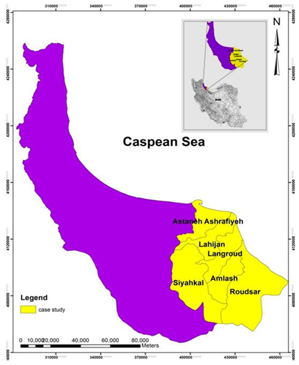 The studied area consists of Rudsar, Langerud, Lahijan and Astaneh-ye Ashrafiyeh cities (Figure1).The selected area is located in the following coordinates, Zone 39 N at the Universal Transverse Mercator (UTM):