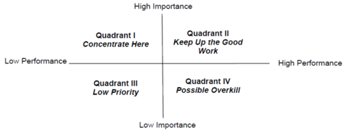 Slack, N., 1994. The importance-performance matrixasa determinant of improvement priority. International Journal of Operations & Production Management, 14(5): 59-75. View at Google Scholar | View at Publisher