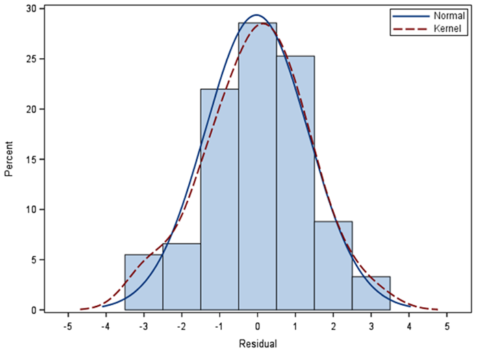 Figure-2. Histogram plot of standardized errors in structural equation modelling reliability of the scale.