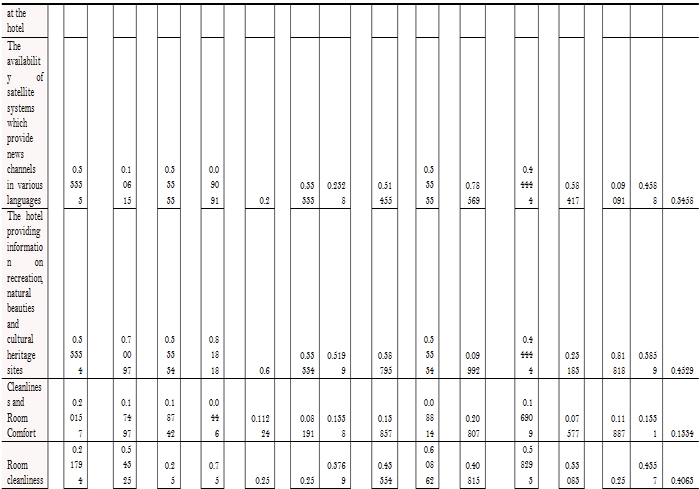 In this study, the second most important factor has been ranked as Satisfaction by the customers, including the region not having polluted air, the rooms overlooking scenery, the food quality of the hotel, availability of green areas and recreate facilities. This finding also correlates with Sohrabi et al. (2012) research findings. However, in Chu and Choi (2000) study, customers have ranked the factor relating to food and recreate services as the fifth important.