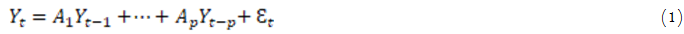 The specification of a VAR model can be defined in Equation 1 as follows (Pfaff, 2008):