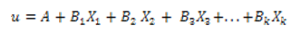 Here A is the constant in Table 3, and while Bs are coefficients of variables, Xs can be considered as independent variables. Accordingly, when we place the variables in the study in u, the following equation is obtained.