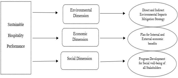 Figure 1 model was originally constructed by Sloan et al. (2017). The authors of this research paper rejuvenated and redesigned it to show a forward movement in the progression of sustainability in hotels, instead of a downwards movement as designed by Sloan et al. (2017). The environmental dimension considers “life support system” such as soil which needs to be sustained for economic production or human life to happen. The economic sustainability emphasizes natural resources that provide inputs for economic outputs. On the other hand, the social dimension considers the human aspects include the attempts to eliminate poverty and hunger (Goodland, 1995). The figure provides three dimensions of sustainable hospitality practices and how hospitality businesses can address those three components.
