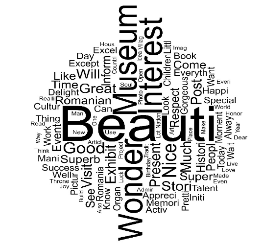 One important step in the analysis is to count the occurrence of each word in order to identify the most important ones. The most frequently occurring words are “beauti(ful)”, followed by “wonder(ful)”, “interest(ing)”, “museum(s)” and “nice”, which indicate that most people have positive sentiments about the activities developed by the Romanian museums (see Figure 3 ).
