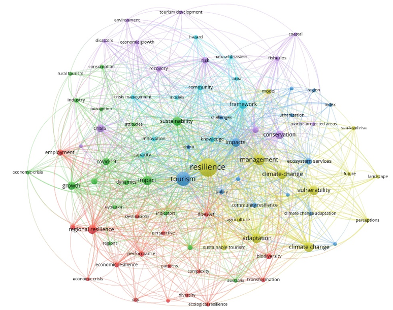 b) For the connection between tourism development and local resilience, five sub-topics of interest are identified: