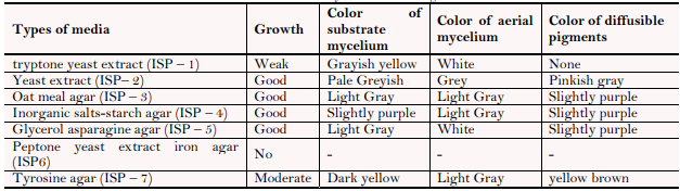 The key factors that strongly affect microbial metabolites are carbon and nitrogen sources [34]. The results showed that antimicrobial activity was higher in riched medium having sugar and peptone as carbon and nitrogen source respectively. The high yield rate from these media is not surprising because these organic substrates are the classic nutrients in Cultivation of Streptomyces [35].