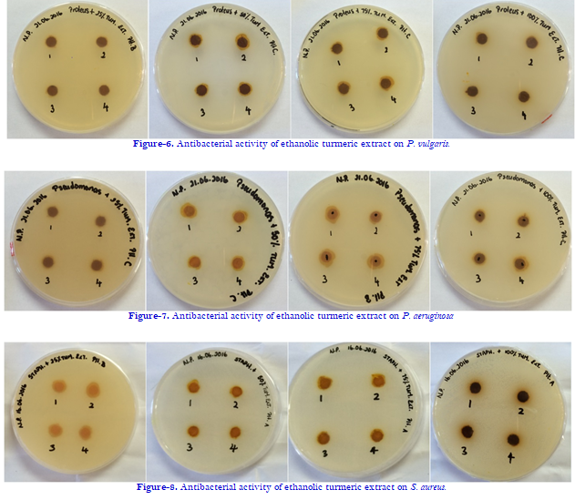 Table-1. The Effect of C. longa ethanol extracts on the tested pathogenic bacteria.