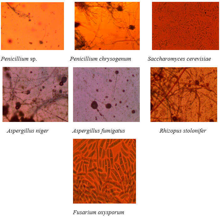 Discrete colonies that developed after incubation were sub-cultured to obtain pure cultures which were stored at 4 oC and used subsequently for microscopic characterization and biochemical analyses. The distinct colonies that developed in the pure culture plates were observed for the morphological and cultural characteristics including the nature of margin, elevation, shape, colour and transparency. The isolates were further characterized and identified following biochemical procedures as described by Harrigan and McCane [10] and Holt, et al. [11]. Fungal isolates were identified using colonial appearance and microscopic characteristics [12, 13].