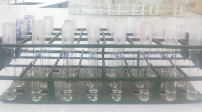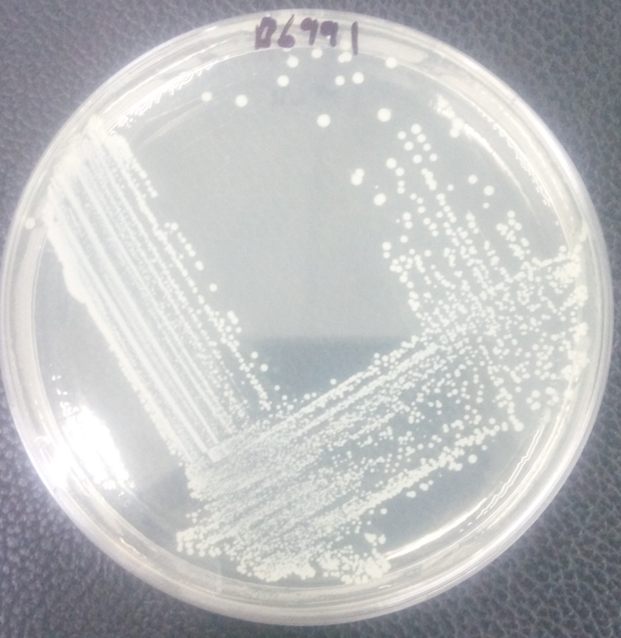 The isolates were taken from the -80°C freezer and suspended in a water bath for approximately one hour to thaw. Inoculating loop, 70% alcohol, permanent marker, Bunsen burner, matches, and 70% alcohol for sterilization of materials were prepared; the bench was wiped using 70% alcohol to maintain an aseptic environment. The nutrient agar plates were taken out of the 4°C fridge and placed in an incubator for an hour in order to dry any moisture present on the agar surface. The preserved isolates were taken out of the -80°C freezer and placed in a water bath for an hour to thaw. The plates were labelled accordingly with date of sub-culturing and code number of the isolate. A sterile wire loop was used to take a loop full of colonies from the preserved isolates, and then streaked four times onto the surface of the nutrient agar under aseptic condition to obtain single isolated colonies. The plates were incubated under aerobic conditions at 37°C for 24 h. After 24 h, the plates were removed from the incubator and examined.