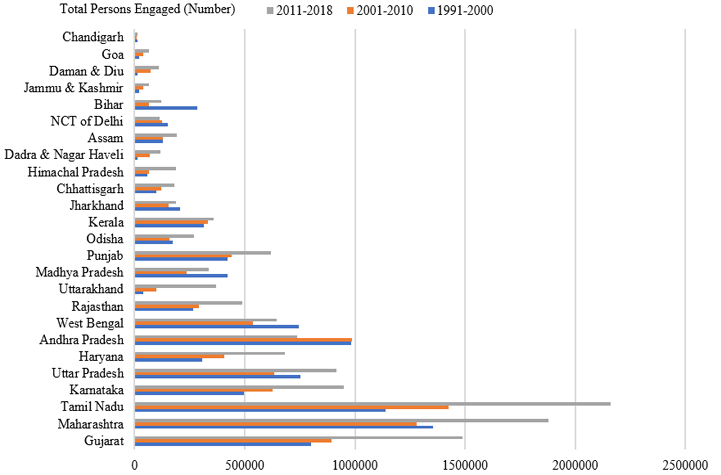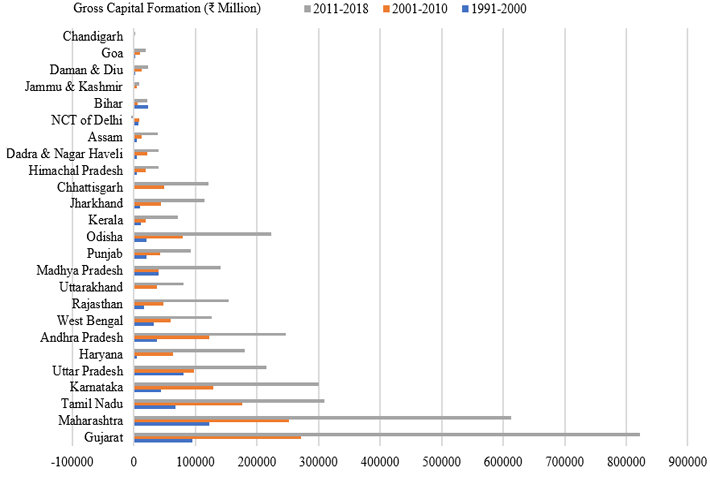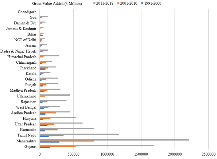 In India, the history of industrial development can be observed in five phases: industrial development during the British regime, 1950–1965, 1965–1980, 1980–1991, and industrial development since the economic reforms. Since its independence, India has achieved remarkable growth in industrial development as the share of the industrial sector in India’s GDP has increased from 20.8% in 1960 to 31.10% in 2019. Furthermore, it can also be observed that the annual growth of industry value-added was positive during 1961–2019. Accordingly, employment in the industrial sector has increased in the period 1990–2019. Per capita GDP and industry value-added per worker have also increased during 1991–2019. The national-level figure indicates that industrial development is on a growth path in India. However, Indian states display a high diversity in industrial development levels which is apparent in the variation in infrastructural development, number of factories, number of industrial workers, capital investment, the banking sector, number of branches of commercial banks, geographical location, agricultural production, educational and research institutions, government policies, population growth, business ecosystem, technological skills and education level of the workers, demand for goods and services, inflation, workforce availability, ecosystem services, capital formation, market structure, saving and investment patterns, technological development, government policies and others.