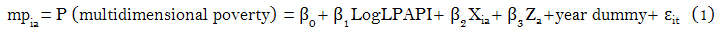 The article inherits the model outlined in the studies by Baldini, Peragine, and Silvestri (2018) and Jindra and Vaz (2019). The model for assessing the impact of institutions on multidimensional poverty has the following form: