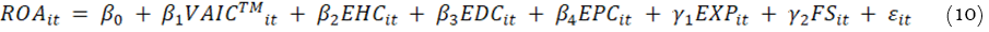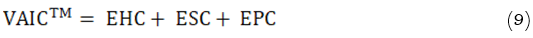Pulic (2000) says that the VAICTM  is the sum of three measures of efficiency: the efficiency of human capital (EHC), the efficiency of structural capital (ESC), and the efficiency of physical capital (EPC). According to Pulic (2000), the  higher the value of VAICTM , the better the IC performance, and vice versa. Therefore, mathematically VAICTM is-