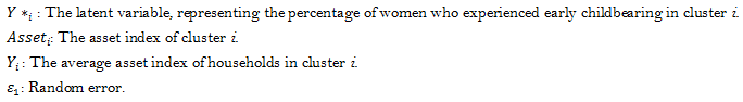 In summary, studies have proven that an increased rate of early childbearing can result from low household welfare. Accordingly, this research proposes the following hypothesis: