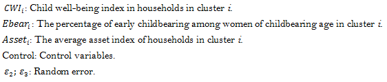 Therefore, this research not only examines the relationship between household welfare and early childbearing but also analyzes the impact of both variables on all dimensions of child well-being, instead of assessing individual dimensions, with the hope of providing a broader picture of child well-being in Vietnam. Moreover, this research measures household welfare using the asset index instead of income and expenditure because the advantages of this method are more suitable for the research context. Finally, unlike previous studies that examined child well-being at the household level (Cockburn & Dostie, 2007; Qi et al., 2022), this research takes a cluster-level perspective to compare the overall child well-being in different regions within the country.