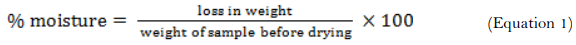 All samples were separately crushed using the laboratory mill into fine powders. Forty grams (40 g) of each sample was weighed in a clean dish that has been weighed and recorded. The samples were transferred into a hot air oven at 105 oC for 24 h. After which the sample was removed and allowed to cool in desiccators for 1 hour and weighed. This was repeated until a constant weight was obtained. Percentage of moisture content was calculated as contained in equation 1.