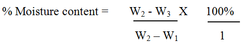 Weight of a previously washed and dried empty evaporating dish was determined using a mettle balance as (W1). A 10g of fermented banana peel was weighed into an evaporating dish (W2). The dish and sample were then placed in the oven and dried for 8 hr at 105 °C after which the sample was placed in a dessicator to cool to room temperature (Fawole & Oso, 2001). After cooling, the sample was weighed. This process was continued until a constant weight was obtained, (W3), (i.e., drying, cooling and weighing were done repeatedly at 30 mins interval until a constant weight was obtained). The weight of the moisture was calculated and expressed as a percentage of weight of the sample analyzed using the formula below: