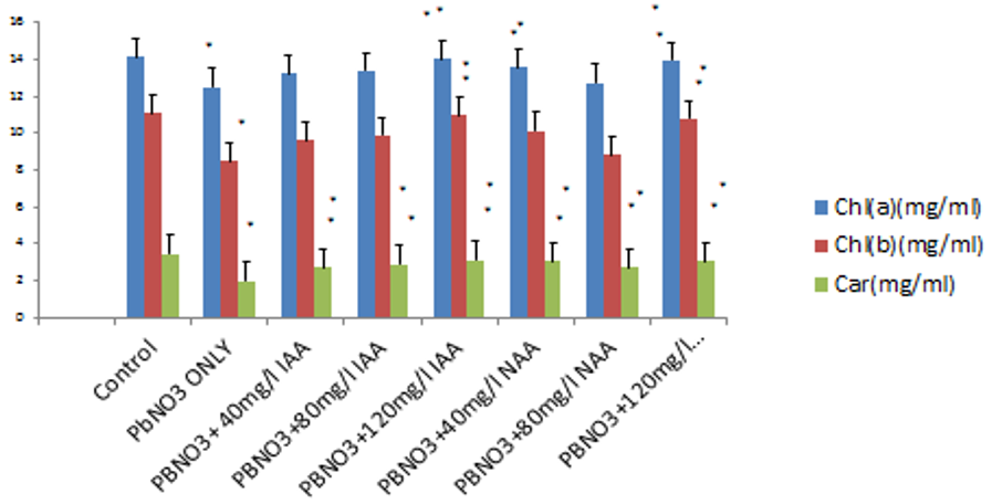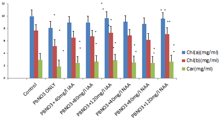 Figure 3. Effect of indole acetic acid and naphthalene acetic acid on photosynthetic pigments of leaf.
