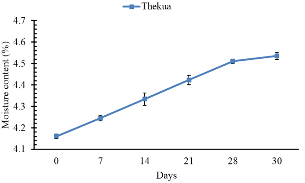 Figure-3. Changes in moisture content of thekua with respect to days.