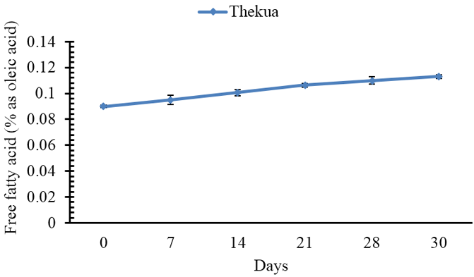 Figure-4. Changes in F.F.A of thekua with respect to days.