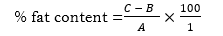 The soxhlet extraction method (AOAC, 2010) was used in determining fat content of sample. Two (2 g) of each samples were weighed and put in extraction thimble. The thimble was placed back in the soxhlet extraction tube fitted with condenser. Weighed flat bottom flask was filled to three quarter of its volume with petroleum ether (40 – 60 oC), connected to the extraction tube. The extraction apparatus were set up and experiment carried out for a period of 3 hours. The petroleum ether was recovered for reuse, fat in flask was dried in an oven at 80 oC for 30 minutes, cooled in desiccator and weighed. Thereafter the difference in the weight of the empty flask and the flask with oil was calculated as percentage fat content.