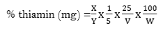 Y = reading of thiamin standard – reading of blank standard.